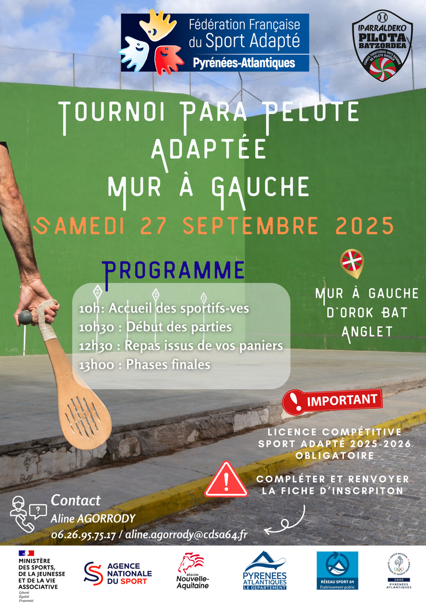 Ce tournoi de Para pelote Adapté, sera proposé en mur à gauche et destiné à des sportifs-ves ayant déjà une expérience de la pelote.
