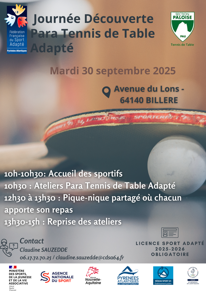 Journée Découverte Para Tennis de Table Adapté - Pau