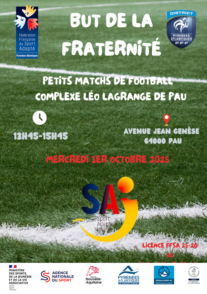 Cette journée sportive est organisée en partenariat avec le District de Football 64. Il s'agit d'une après-midi sur le thème du football composée de petits matchs amicaux sur mini-terrains, alternés avec des ateliers de football, avec des équipes composées des enfants du Sport Adapté et des enfants des sections sportives des collèges.