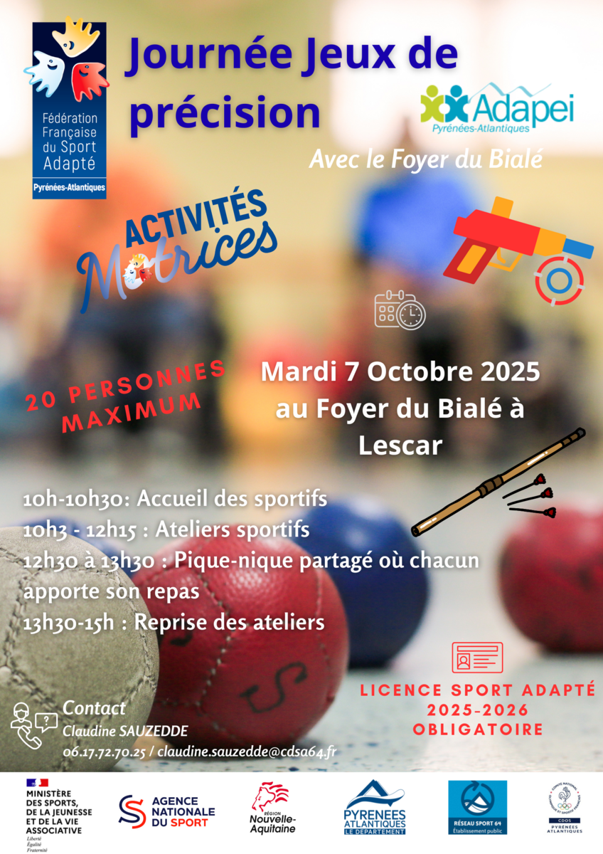 Claudine SAUZEDDE : claudine.sauzedde@cdsa64.fr - 06 17 72 70 25