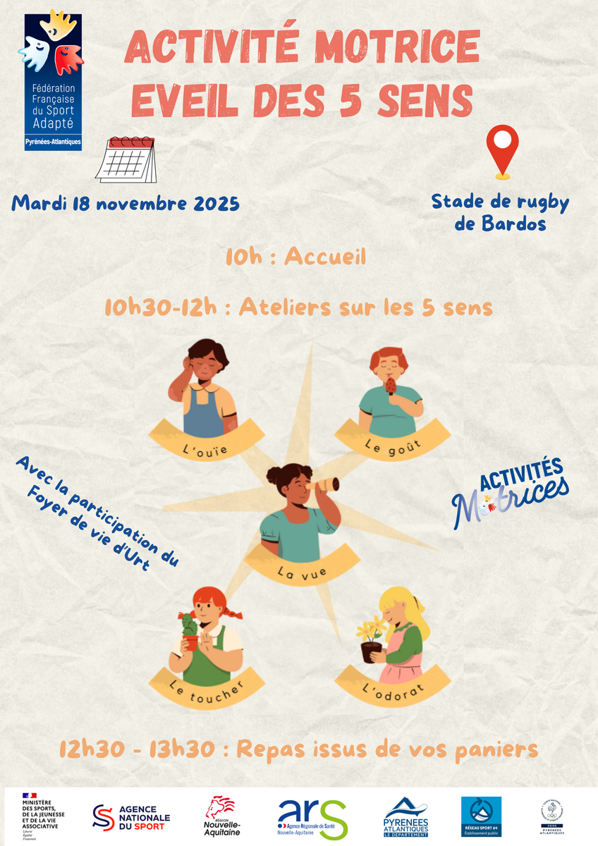 L'objectif de cette journée est de sensibiliser, développer et faire appel à ses 5 sens au cours des différents ateliers qui seront présentés sur la matinée. Cette journée est organisée en partenariat avec le Foyer de vie de Urt.