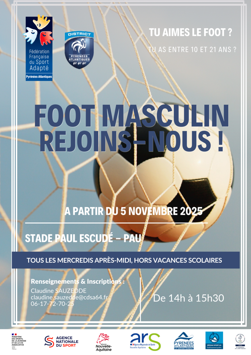 Ce projet est porté en partenariat avec le District de Football des Pyrénées Atlantiques et est encadré par un bénévole.